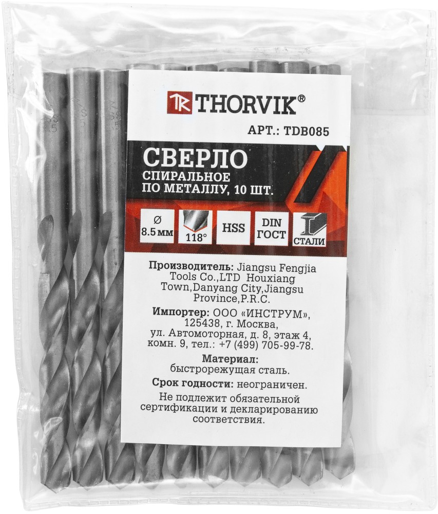 Как купить Сверло спиральное по металлу HSS, d8.5 мм, THORVIK?