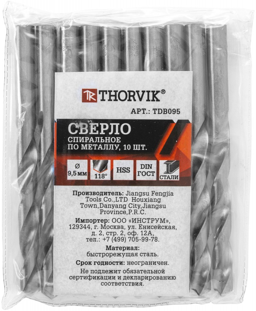 Доставка инструмента Сверло спиральное по металлу HSS, d9.5 мм, THORVIK