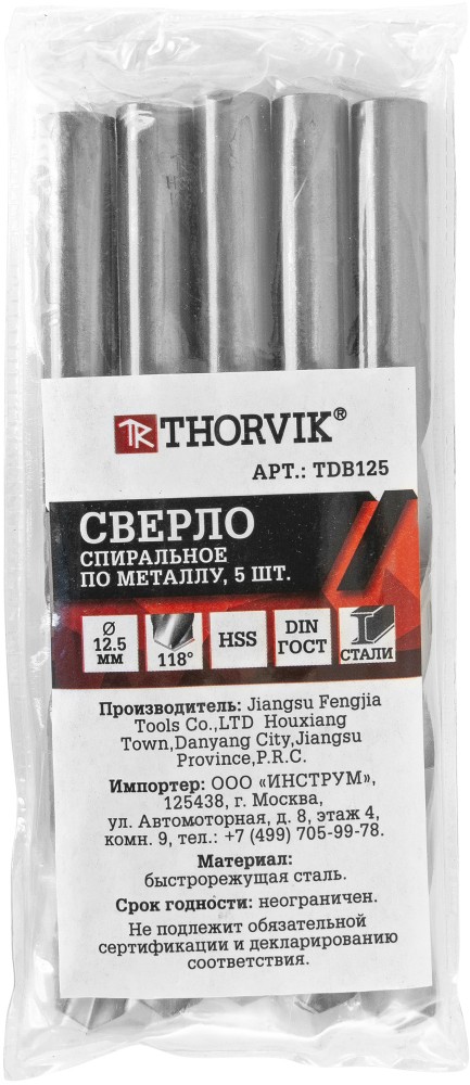 Доставка инструмента Сверло спиральное по металлу HSS, d12.5 мм, THORVIK