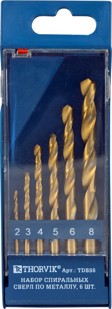 Доставка инструмента Набор спиральных сверл по металлу HSS TiN в пластиковом кейсе, d2.0-8.0 мм, 6 предметов, THORVIK
