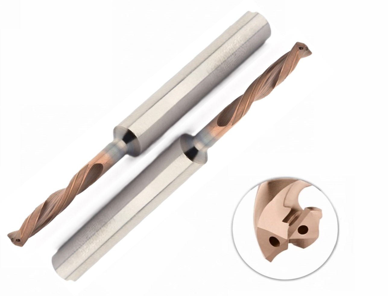 Монолитное твердосплавное сверло с внутренними каналами для эффективного подвода смазочно-охлаждающей жидкости (СОЖ). Этот инструмент предназначен для высокопроизводительного сверления отверстий в легированных и нержавеющих сталях. Специализированное покрытие HF35 обеспечивает повышенную износостойкость и термостойкость, что критически важно при работе на высоких режимах резания на станках с ЧПУ.